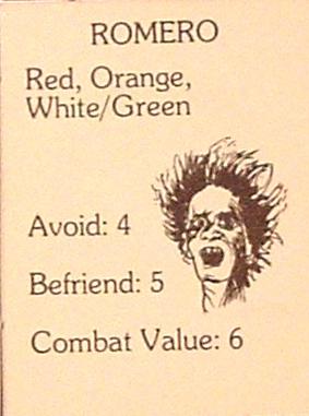 discovered, the player must draw an encounter card, like the Romero card below.